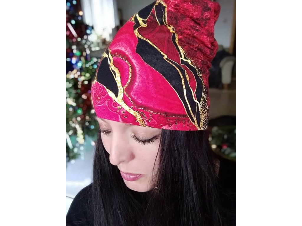 Čepice má dostatečný prostor pro culík i drdoly. Čepka je dvojitá, takže chrání proti zimě a zároveň je velmi příjemná a nikde Vás neomezí. Podle potřeby si naaranžujte a ohnete lem podle potřeby.