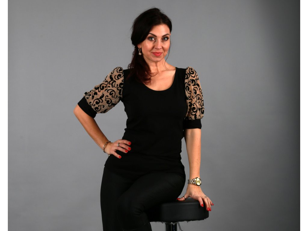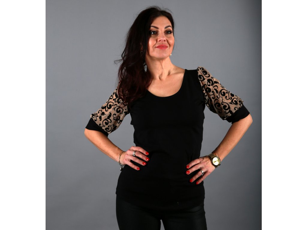 Překrásná halenka pro všechny ženy milující eleganci. Rukávky jsou z jemné,  tylové síťky. Rukáv je střižen do balónku  a ukončen manžetou což dodává střihu jemnost a eleganci. KASANDRA je jemně projmutá. Ideální ke všem sukním i kalhotám.