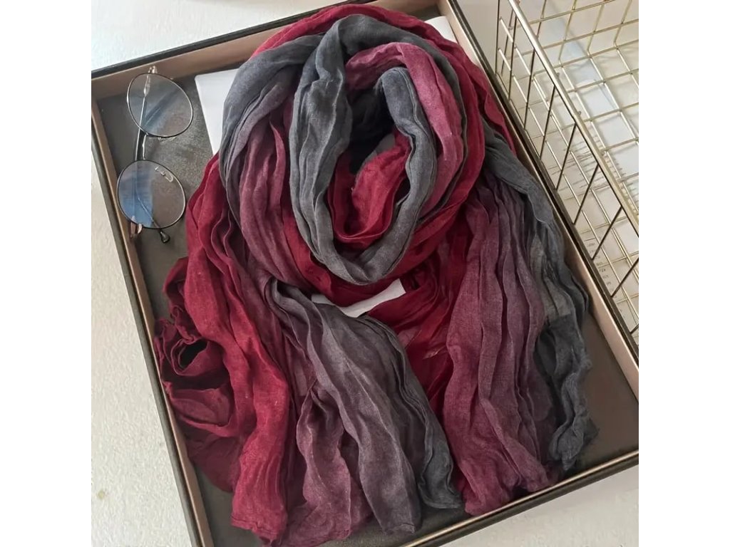 Oboustranná luxusní plisovaná šálka v vínovo- šedém odstínu. Tato exkluzivní šálka dodá vašemu každodennímu, ale i společenskému outfitu eleganci. V zimě Vás příjemně zahřeje a v létě ochladí.