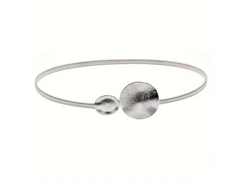 Tento elegantní dámský opasek ve STŘÍBRNÉ, kovové barvě se přizpůsobí dámské siluetě díky jeho pružnosti.