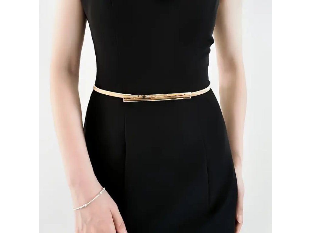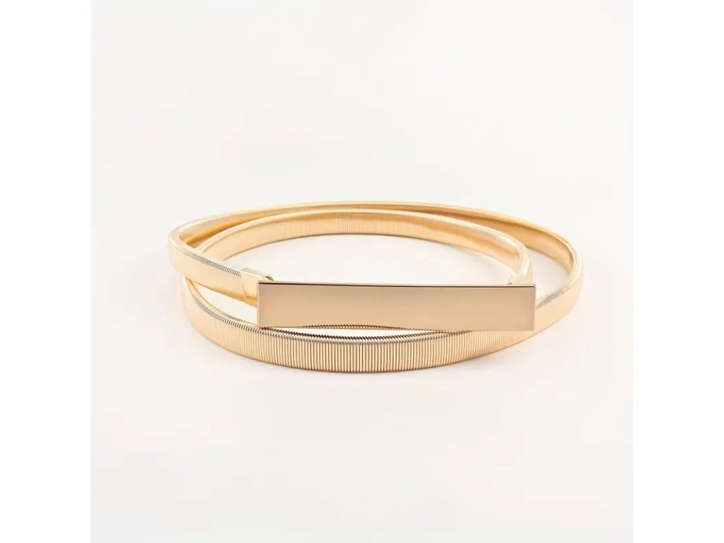 Elastický, strečový pásek ve zlaté se přizpůsobí dámské siluetě díky jeho pružnosti. Elegantní a ležérní styl, který zaujme.