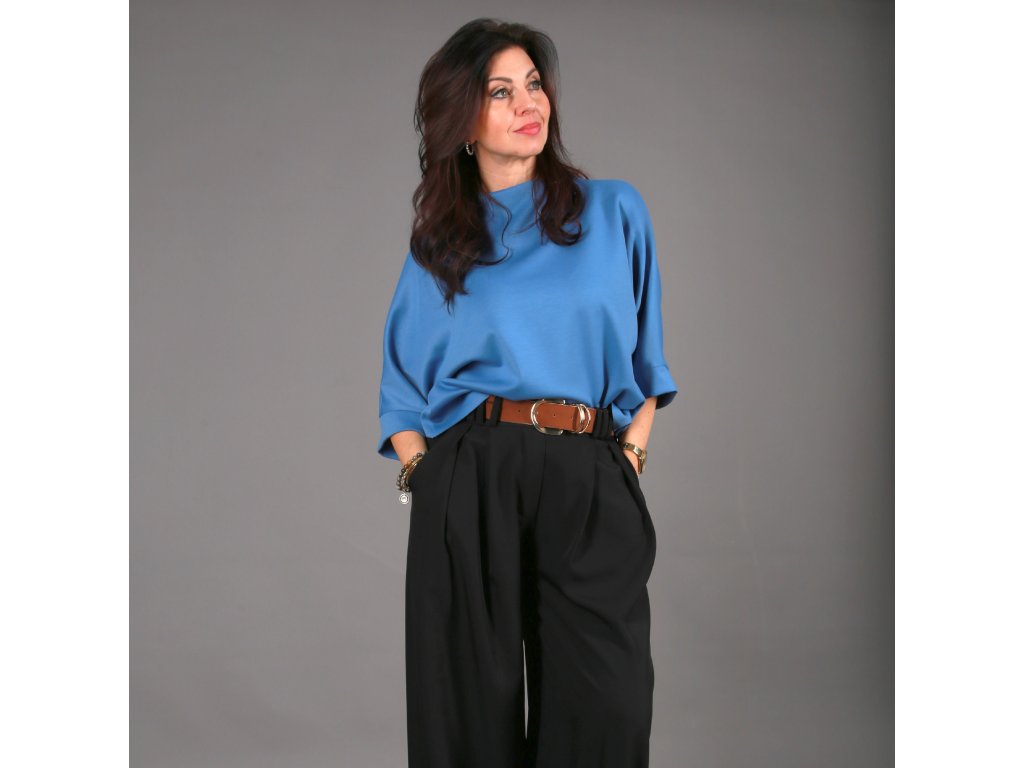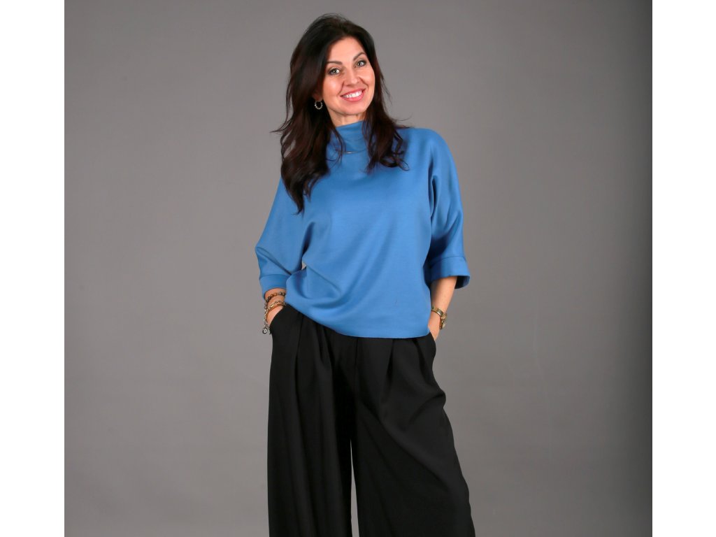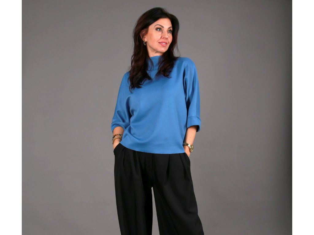 Díky oversize provedení je vhodné pro velikosti XS až XL – každé ženě sedí jinak, ale vždy přirozeně. Tričko má: tříčtvrteční rukávy, zakončené jemnými lemy. Stojáček, který dodává čistý, moderní vzhled minimalistickou linii, která se snadno kombinuje. Netopýr můžeš nosit sportovně i elegantně. Zastrčíš ho do kalhot nebo sukně, zvýrazníš pas páskem, přehodíš křivák, kabát nebo sako – a pokaždé vznikne jiný outfit. Skvěle funguje jako první vrstva. Je to ten typ kousku, po kterém sáhneš znovu a znovu. Protože víš, že se v něm budeš cítit dobře.