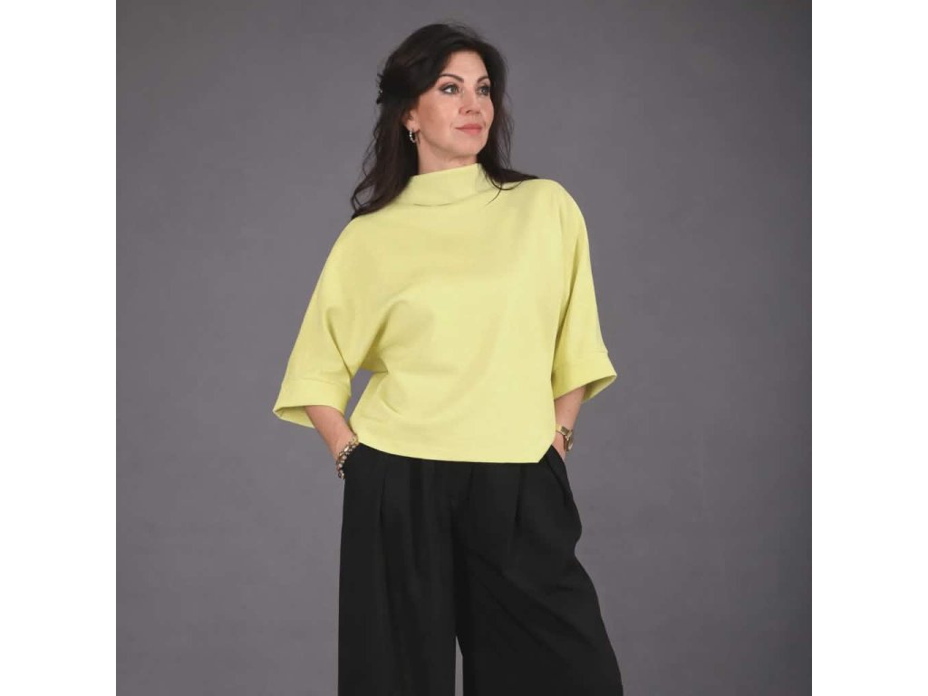 Díky oversize provedení je vhodné pro velikosti XS až XL – každé ženě sedí jinak, ale vždy přirozeně. Tričko má: tříčtvrteční rukávy, zakončené jemnými lemy. Stojáček, který dodává čistý, moderní vzhled minimalistickou linii, která se snadno kombinuje. Netopýr můžeš nosit sportovně i elegantně. Zastrčíš ho do kalhot nebo sukně, zvýrazníš pas páskem, přehodíš křivák, kabát nebo sako – a pokaždé vznikne jiný outfit. Skvěle funguje jako první vrstva. Je to ten typ kousku, po kterém sáhneš znovu a znovu. Protože víš, že se v něm budeš cítit dobře.