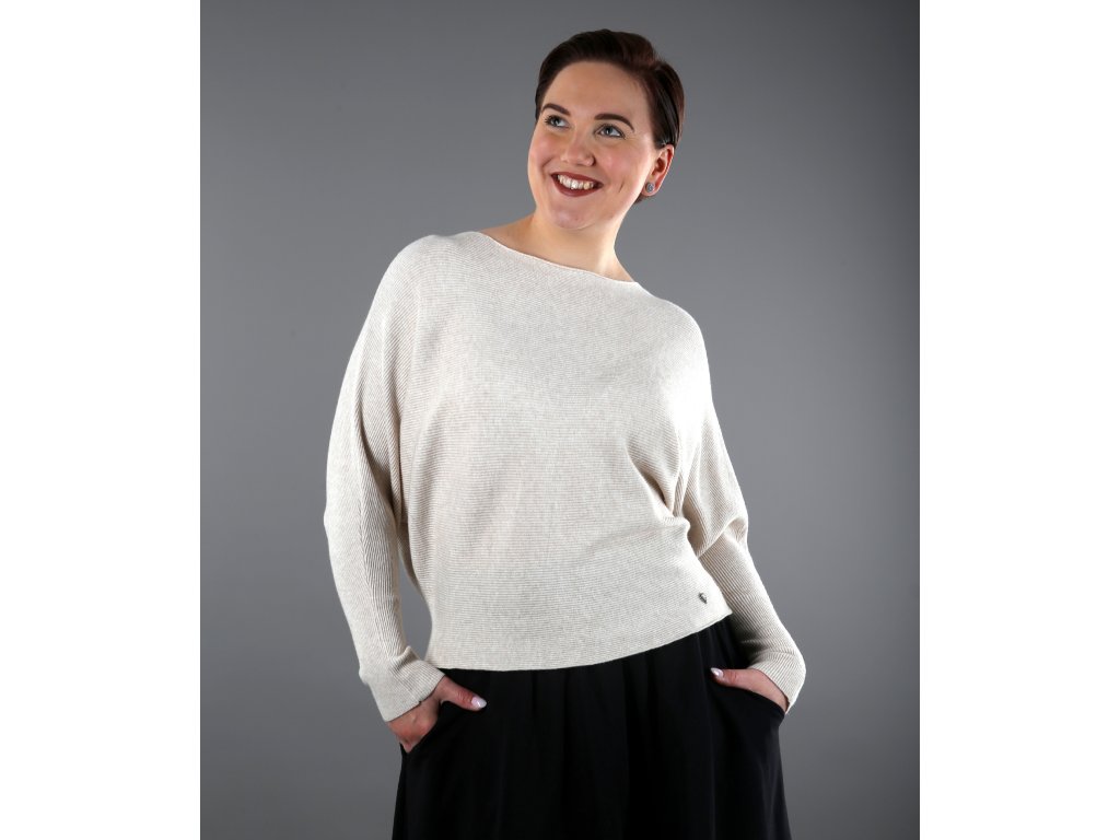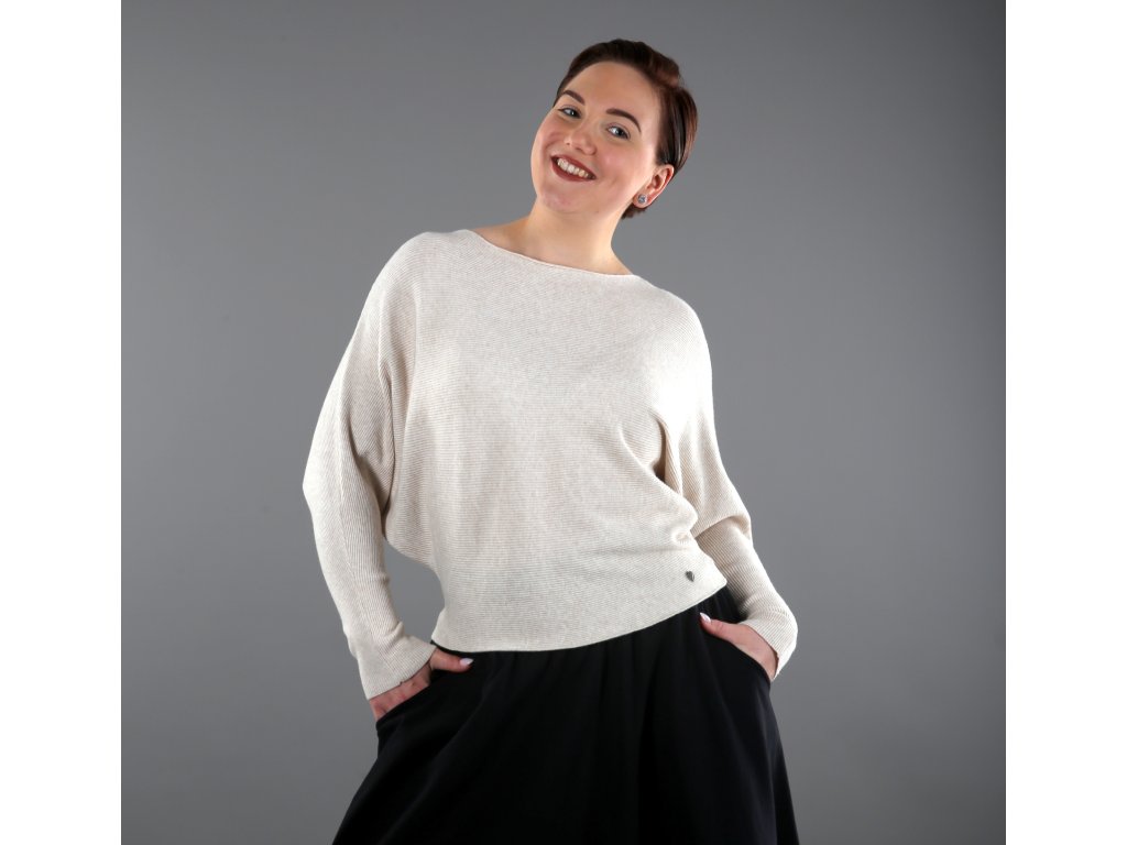 Svetr je z příjemné viskózy – materiálu, který si zamilujete na první dotek. Lehký vroubek dodává jemnou strukturu, netopýří rukáv – přizpůsobí se každé postavě, malým i větším prsům. Skvělý i pro ženy, které trápí otoky paží nebo potíže s lymfatickým systémem – svetr nikde netlačí a neomezuje.