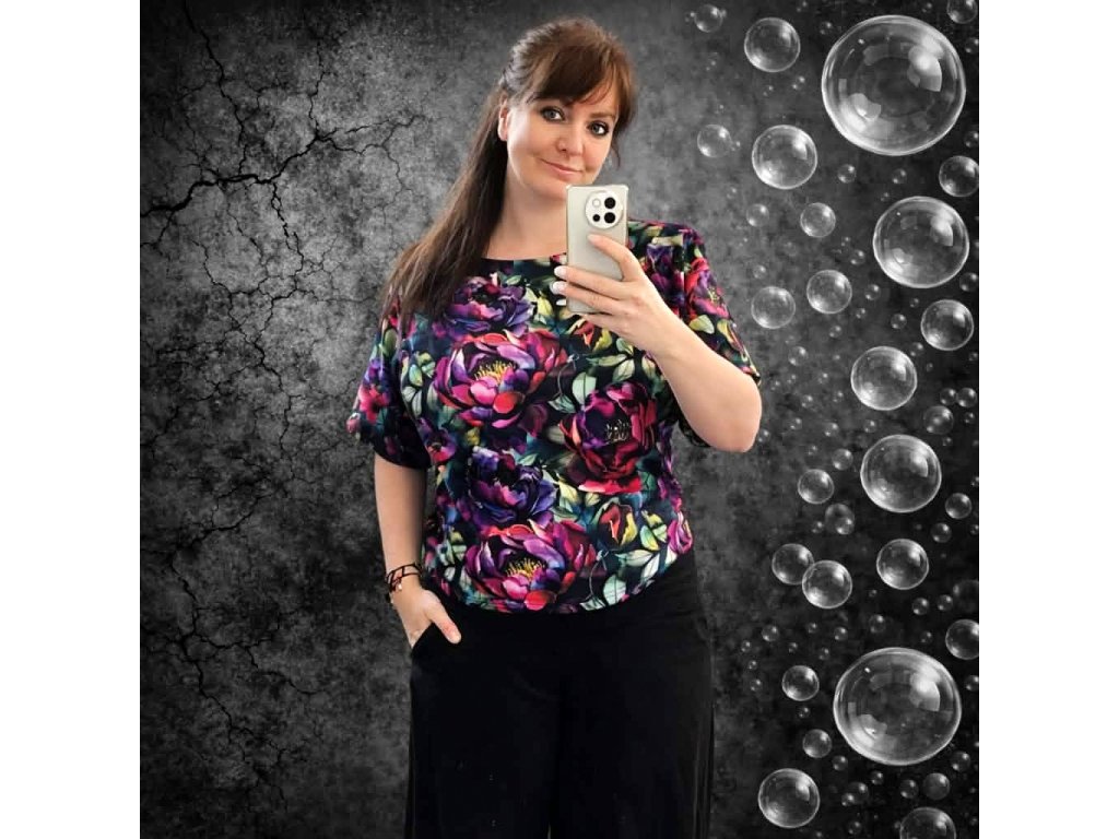 PIVOŇKOVÝ top, který si vás vybere. Tenhle top vám nepředstavuji jako model. Představuji vám pocit. Jsem v něm osobně já. A přesně takhle ho nosím. Lehce. Přirozeně. Bez přemýšlení. Střih je jemně projmutý, řešený do jemně netopýří siluety, takže krásně sedí malému i plnějšímu poprsí. Nic netlačí, nic nesvazuje. Jen plyne. A pokud jste si někdy říkala, že „takové střihy nejsou pro vás“, tak tady vás to bude bavit. Protože jsou naprosto boží. Rukáv je delší, zakončený manžetou. Praktický detail, který dělá rozdíl. Zakryje, co má. Zvýrazní, co chcete.