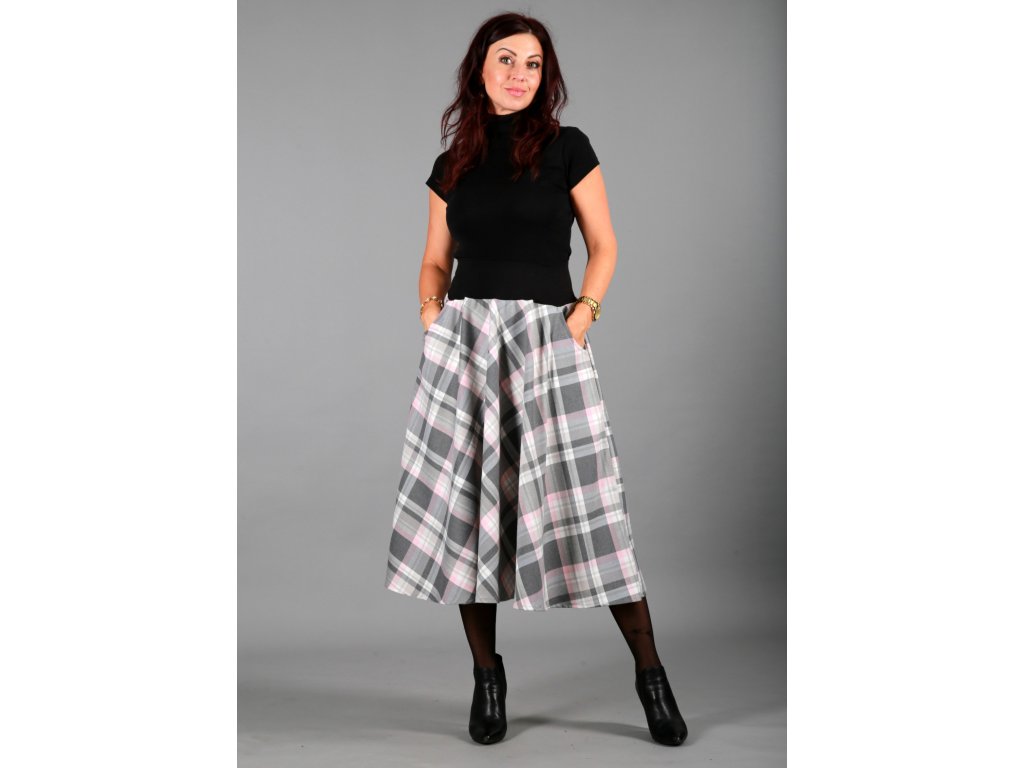 Materiál: kostýmovka šedo růžová skotská kostka, SLOŽENÍ: 80%Polyester 18%Viskoza 2%Spandex