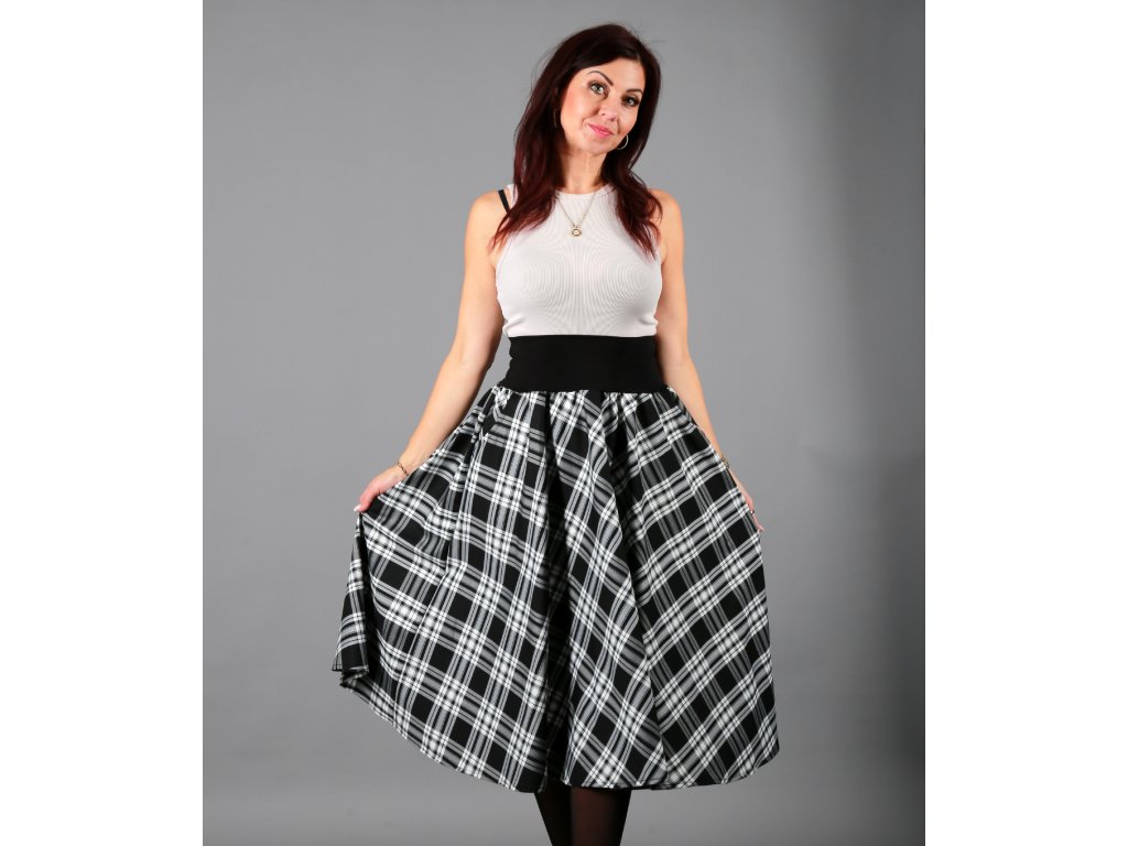 Je splývavá a příjemná na nošení a má atraktivní vzor v černo-bílém káru.