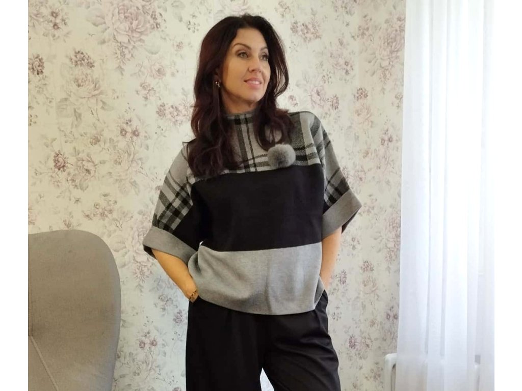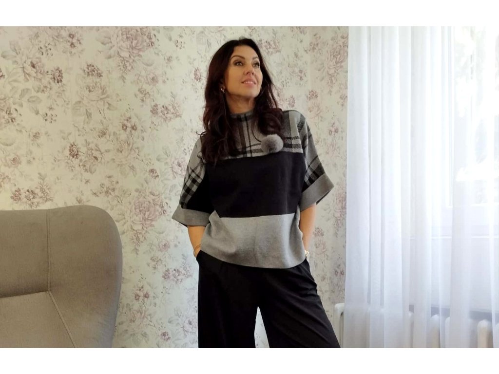 Svetr s babulkou černo-šedou kombinací...