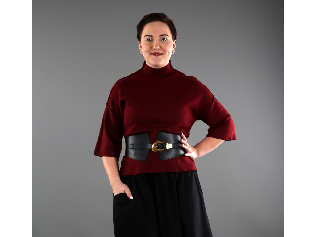 Svetr, který si vás získá na první dotek. Tento výjimečný kousek spojuje sofistikovaný design a nekompromisní pohodlí. Má tříčtvrteční rukávy, elegantní stojáček a decentně přiznanou rubovou stranu, která dodává každému outfitu nádech originality a stylu. Je vyroben z vysokogramážní, prvotřídní viskózy, která je příjemná na tělo a dokonale jemná. Svetr můžete nosit na nahou pokožku nebo v kombinaci s tenkou vrstvou pod ním – vždy působí dokonale upraveně a chic.