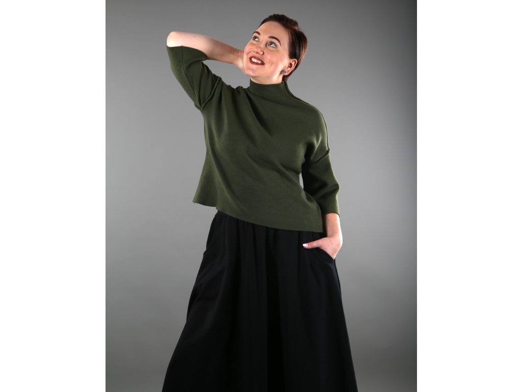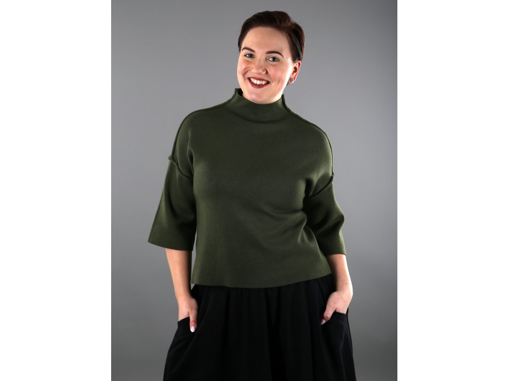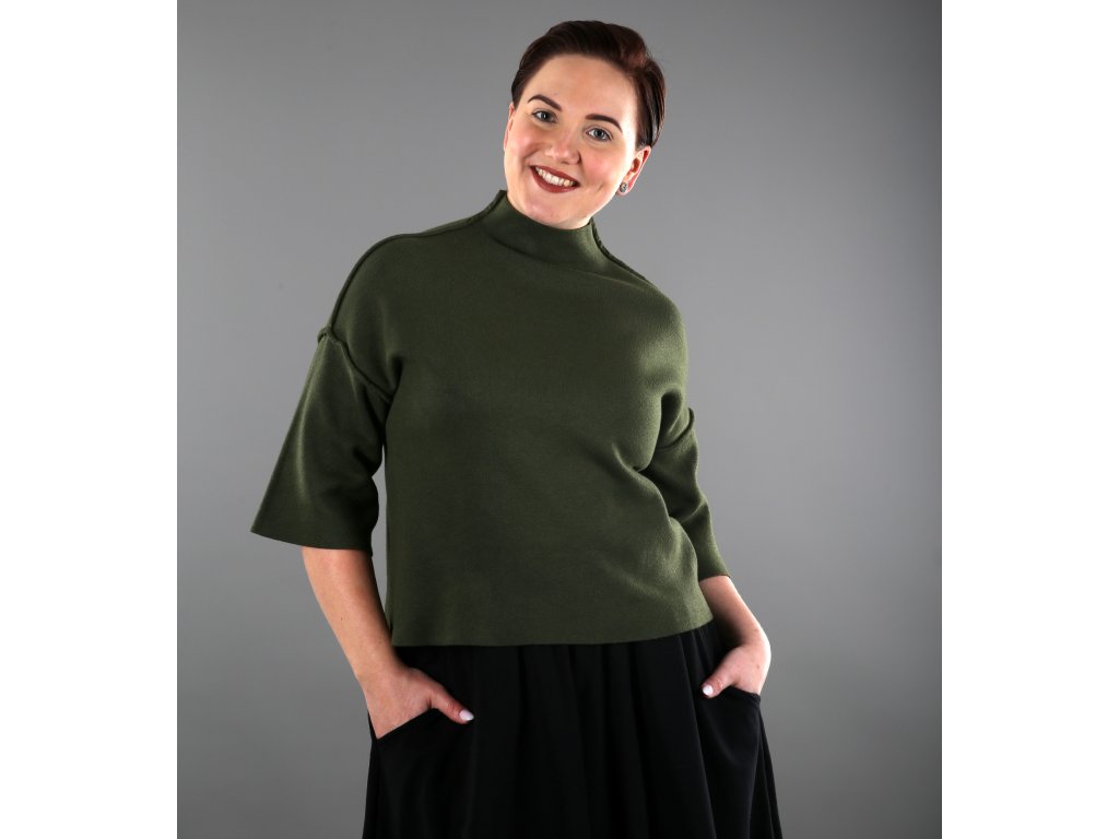 Svetr, který si vás získá na první dotek. Tento výjimečný kousek spojuje sofistikovaný design a nekompromisní pohodlí. Má tříčtvrteční rukávy, elegantní stojáček a decentně přiznanou rubovou stranu, která dodává každému outfitu nádech originality a stylu. Je vyroben z vysokogramážní, prvotřídní viskózy, která je příjemná na tělo a dokonale jemná. Svetr můžete nosit na nahou pokožku nebo v kombinaci s tenkou vrstvou pod ním – vždy působí dokonale upraveně a chic.